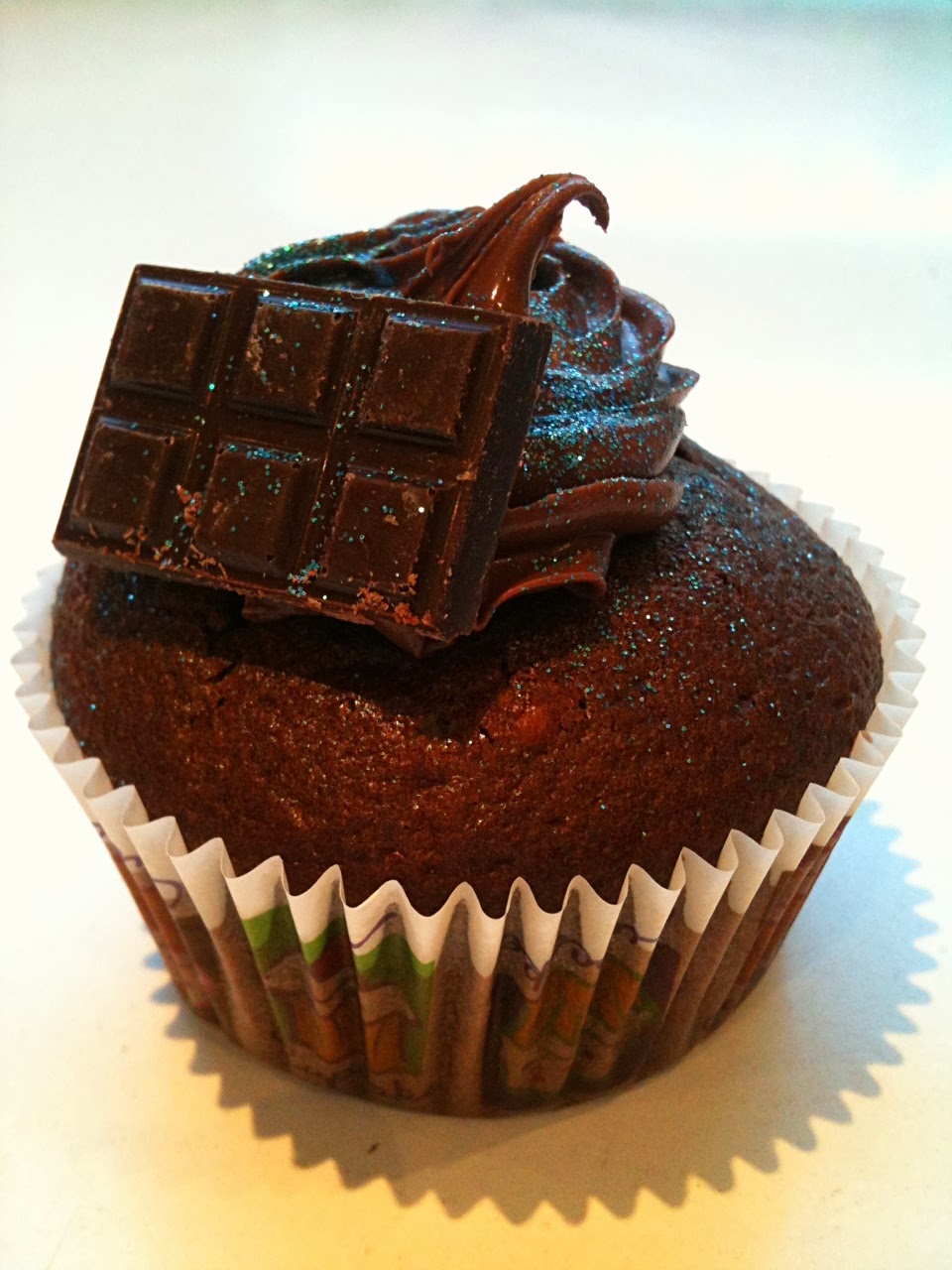 Spéciale dédicace rien que pour les destinataires de ce cupcake au 2 chocolats habillé d'un top chocolat crémeux et caramel sans sucre à l'orange.